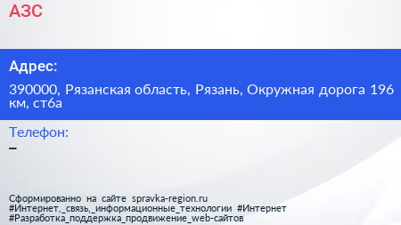 АЗС по адресу 390000, Рязанская область, Рязань, Окружная дорога 196 км, ст6а в дальнейшем Организация, размещена в следующих категориях: