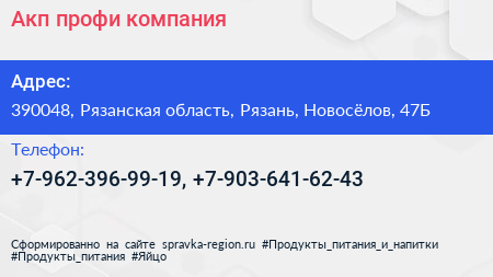 Акп-профи, компания по адресу 390048, Рязанская область, Рязань, Новосёлов, 47Б в дальнейшем Организация, размещена в следующих категориях: