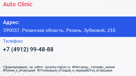 Auto Clinic по адресу 390037, Рязанская область, Рязань, Зубковой, 21Б в дальнейшем Организация, размещена в следующих категориях: