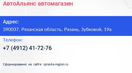 АвтоАльянс, автомагазин по адресу 390037, Рязанская область, Рязань, Зубковой, 19а в дальнейшем Организация, размещена в следующих категориях: