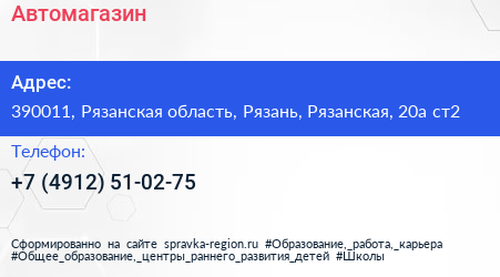 Автомагазин по адресу 390011, Рязанская область, Рязань, Рязанская, 20а ст2 в дальнейшем Организация, размещена в следующих категориях: