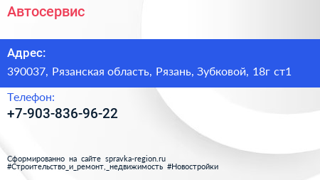 Автосервис по адресу 390037, Рязанская область, Рязань, Зубковой, 18г ст1 в дальнейшем Организация, размещена в следующих категориях: