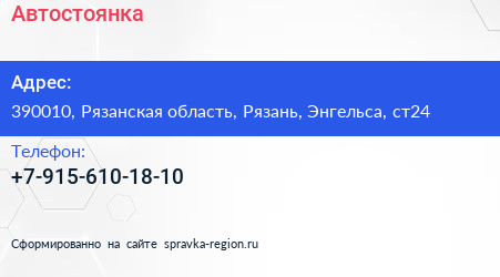 Автостоянка по адресу 390010, Рязанская область, Рязань, Энгельса, ст24 в дальнейшем Организация, размещена в следующих категориях: