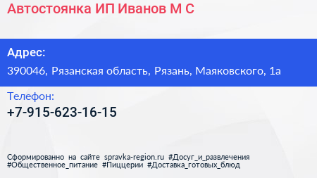 Автостоянка, ИП Иванов М.С. по адресу 390046, Рязанская область, Рязань, Маяковского, 1а в дальнейшем Организация, размещена в следующих категориях: