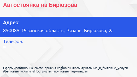 Автостоянка на Бирюзова по адресу 390039, Рязанская область, Рязань, Бирюзова, 2а в дальнейшем Организация, размещена в следующих категориях:
