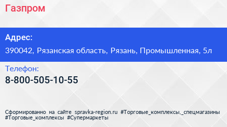 Газпром по адресу 390042, Рязанская область, Рязань, Промышленная, 5л в дальнейшем Организация, размещена в следующих категориях: