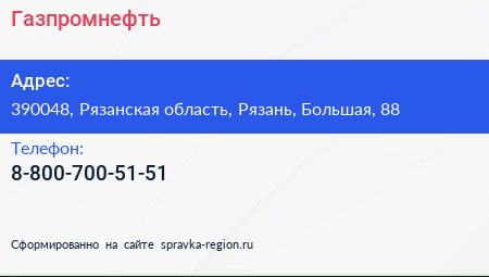 Газпромнефть по адресу 390048, Рязанская область, Рязань, Большая, 88 в дальнейшем Организация, размещена в следующих категориях: