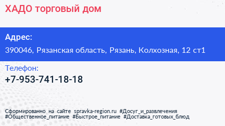 ХАДО, торговый дом по адресу 390046, Рязанская область, Рязань, Колхозная, 12 ст1 в дальнейшем Организация, размещена в следующих категориях: