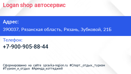 Logan-shop, автосервис по адресу 390037, Рязанская область, Рязань, Зубковой, 21Б в дальнейшем Организация, размещена в следующих категориях:
