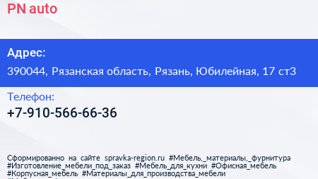 PN-auto по адресу 390044, Рязанская область, Рязань, Юбилейная, 17 ст3 в дальнейшем Организация, размещена в следующих категориях: