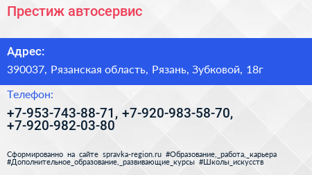 Престиж, автосервис по адресу 390037, Рязанская область, Рязань, Зубковой, 18г в дальнейшем Организация, размещена в следующих категориях: