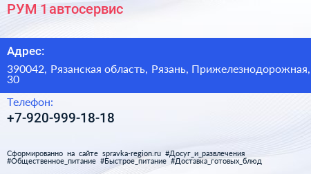 РУМ-1, автосервис по адресу 390042, Рязанская область, Рязань, Прижелезнодорожная, 30 в дальнейшем Организация, размещена в следующих категориях: