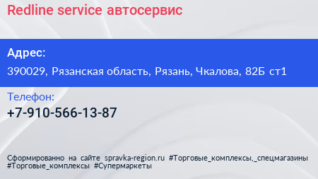 Redline service, автосервис по адресу 390029, Рязанская область, Рязань, Чкалова, 82Б ст1 в дальнейшем Организация, размещена в следующих категориях:
