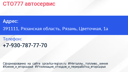 СТО777, автосервис по адресу 391111, Рязанская область, Рязань, Цветочная, 1а в дальнейшем Организация, размещена в следующих категориях:
