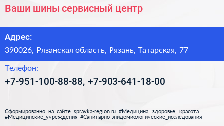 Ваши шины, сервисный центр по адресу 390026, Рязанская область, Рязань, Татарская, 77 в дальнейшем Организация, размещена в следующих категориях: