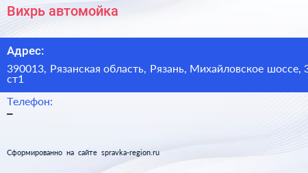 Вихрь, автомойка по адресу 390013, Рязанская область, Рязань, Михайловское шоссе, 3 ст1 в дальнейшем Организация, размещена в следующих категориях: