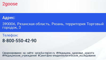 2goose по адресу 390006, Рязанская область, Рязань, территория Торговый городок, 3 в дальнейшем Организация, размещена в следующих категориях:
