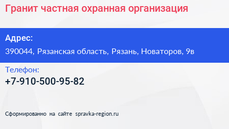 Гранит, частная охранная организация по адресу 390044, Рязанская область, Рязань, Новаторов, 9в в дальнейшем Организация, размещена в следующих категориях: