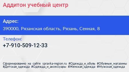 Аддитон, учебный центр по адресу 390000, Рязанская область, Рязань, Сенная, 8 в дальнейшем Организация, размещена в следующих категориях: