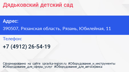Дядьковский детский сад по адресу 390507, Рязанская область, Рязань, Юбилейная, 11 в дальнейшем Организация, размещена в следующих категориях: