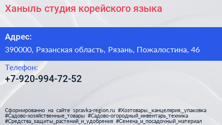 Ханыль, студия корейского языка по адресу 390000, Рязанская область, Рязань, Пожалостина, 46 в дальнейшем Организация, размещена в следующих категориях: