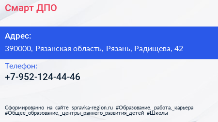 Смарт ДПО по адресу 390000, Рязанская область, Рязань, Радищева, 42 в дальнейшем Организация, размещена в следующих категориях: