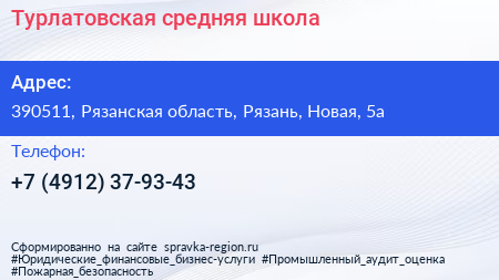 Турлатовская средняя школа по адресу 390511, Рязанская область, Рязань, Новая, 5а в дальнейшем Организация, размещена в следующих категориях: