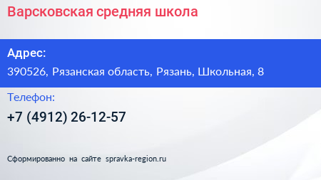 Варсковская средняя школа по адресу 390526, Рязанская область, Рязань, Школьная, 8 в дальнейшем Организация, размещена в следующих категориях: