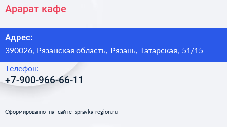 Арарат, кафе по адресу 390026, Рязанская область, Рязань, Татарская, 51/15 в дальнейшем Организация, размещена в следующих категориях: