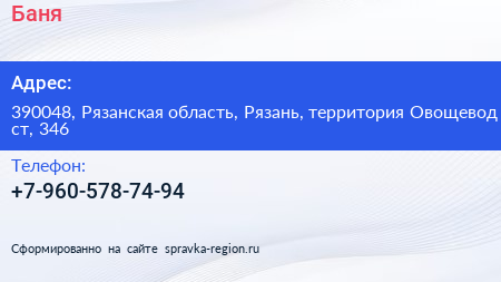 Баня по адресу 390048, Рязанская область, Рязань, территория Овощевод ст, 346 в дальнейшем Организация, размещена в следующих категориях: