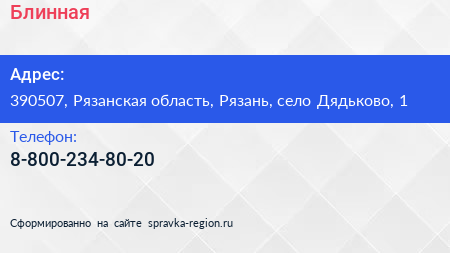 Блинная по адресу 390507, Рязанская область, Рязань, село Дядьково, 1 в дальнейшем Организация, размещена в следующих категориях: