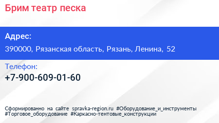 Брим, театр песка по адресу 390000, Рязанская область, Рязань, Ленина, 52 в дальнейшем Организация, размещена в следующих категориях: