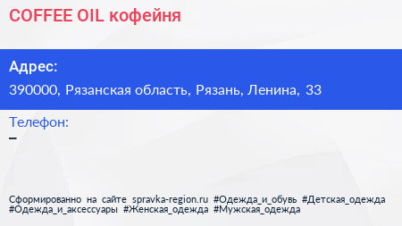 COFFEE OIL, кофейня по адресу 390000, Рязанская область, Рязань, Ленина, 33 в дальнейшем Организация, размещена в следующих категориях: