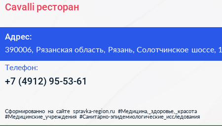 Cavalli, ресторан по адресу 390006, Рязанская область, Рязань, Солотчинское шоссе, 1 в дальнейшем Организация, размещена в следующих категориях: