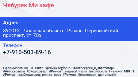 Чебурек.Ми, кафе по адресу 390013, Рязанская область, Рязань, Первомайский проспект, ст 70а в дальнейшем Организация, размещена в следующих категориях: