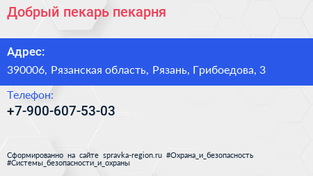 Добрый пекарь, пекарня по адресу 390006, Рязанская область, Рязань, Грибоедова, 3 в дальнейшем Организация, размещена в следующих категориях: