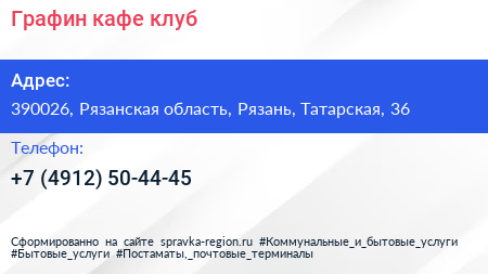 Графин, кафе-клуб по адресу 390026, Рязанская область, Рязань, Татарская, 36 в дальнейшем Организация, размещена в следующих категориях: