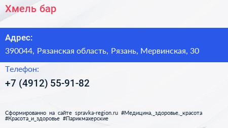Хмель, бар по адресу 390044, Рязанская область, Рязань, Мервинская, 30 в дальнейшем Организация, размещена в следующих категориях: