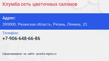 Клумба, сеть цветочных салонов по адресу 390000, Рязанская область, Рязань, Ленина, 21 в дальнейшем Организация, размещена в следующих категориях: