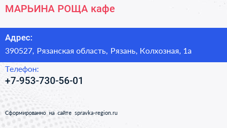 МАРЬИНА РОЩА, кафе по адресу 390527, Рязанская область, Рязань, Колхозная, 1а в дальнейшем Организация, размещена в следующих категориях: