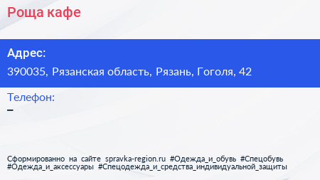 Роща, кафе по адресу 390035, Рязанская область, Рязань, Гоголя, 42 в дальнейшем Организация, размещена в следующих категориях: