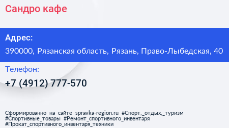 Сандро, кафе по адресу 390000, Рязанская область, Рязань, Право-Лыбедская, 40 в дальнейшем Организация, размещена в следующих категориях: