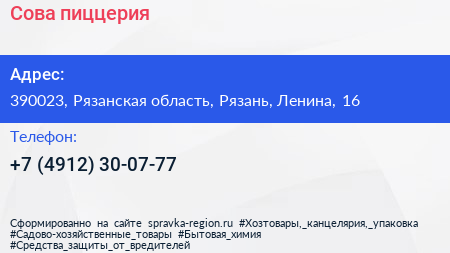 Сова, пиццерия по адресу 390023, Рязанская область, Рязань, Ленина, 16 в дальнейшем Организация, размещена в следующих категориях: