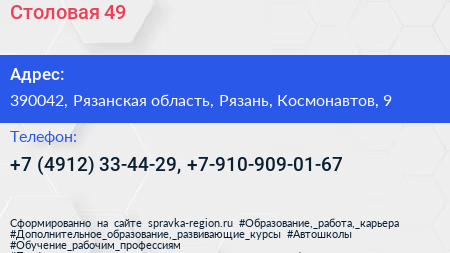 Столовая №49 по адресу 390042, Рязанская область, Рязань, Космонавтов, 9 в дальнейшем Организация, размещена в следующих категориях: