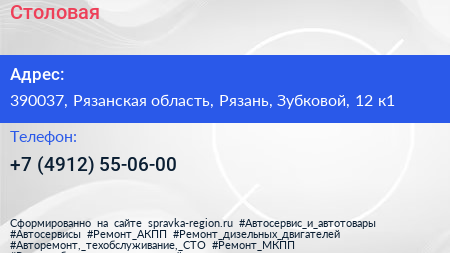 Столовая по адресу 390037, Рязанская область, Рязань, Зубковой, 12 к1 в дальнейшем Организация, размещена в следующих категориях: