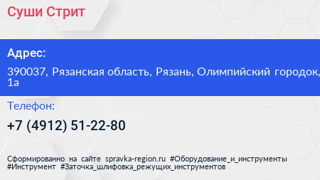 Суши Стрит по адресу 390037, Рязанская область, Рязань, Олимпийский городок, 1а в дальнейшем Организация, размещена в следующих категориях: