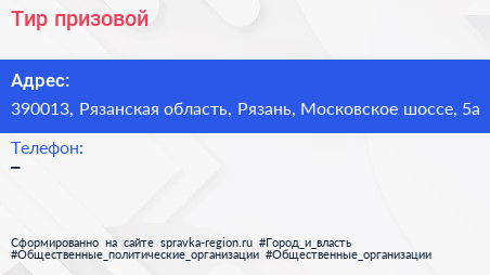 Тир призовой по адресу 390013, Рязанская область, Рязань, Московское шоссе, 5а в дальнейшем Организация, размещена в следующих категориях: