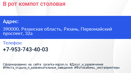 В рот компот, столовая по адресу 390000, Рязанская область, Рязань, Первомайский проспект, 32а в дальнейшем Организация, размещена в следующих категориях: