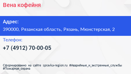 Вена, кофейня по адресу 390000, Рязанская область, Рязань, Мюнстерская, 2 в дальнейшем Организация, размещена в следующих категориях: