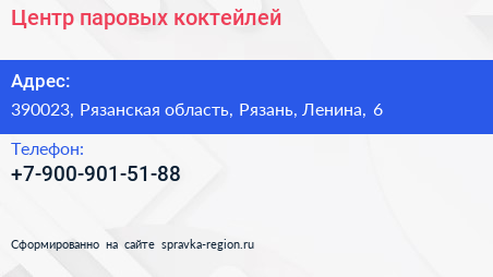 Центр паровых коктейлей по адресу 390023, Рязанская область, Рязань, Ленина, 6 в дальнейшем Организация, размещена в следующих категориях: